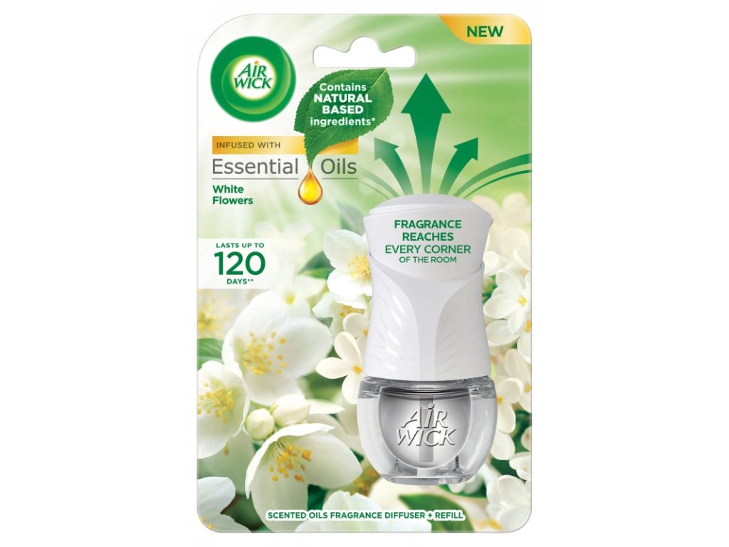 Air Wick Elektrický strojček - osviežovač vzduchu s náplňou Biele kvety 19 ml, dodáva hrejivú a stálu dlhotrvajúcu vôňu, podľa zvolenej intenzity vydrží až 120 dní.Dodatočné parametre