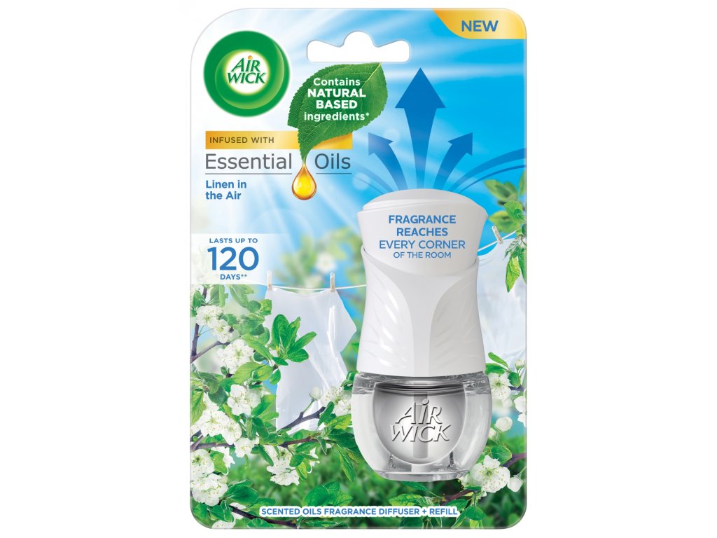 Air Wick Elektrický strojček - osviežovač vzduchu s náplňou Vôňa bielizne vo vánku 19 ml, dodáva stálu dlhotrvajúcu vôňu, podľa zvolenej intenzity vydrží až 120 dní.Dodatočné parametre