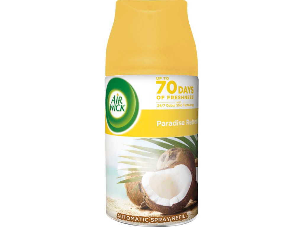 Doprajte si trochu raja spojeného s vôňou čerstvého kokosu, sladkých kvetov mandlí a tónom vône čerešní. Posilnite vôňu príbehu Vášho domova s automatickým sprejom od Air Wick Life Scents Freshmatic - Rajská záhrada. Doprajte si dotyk raja vo vlastnom útočisku s čerstvým kokosom, mandľovým kvetom a dotykom čerešní.Dodatočné parametre