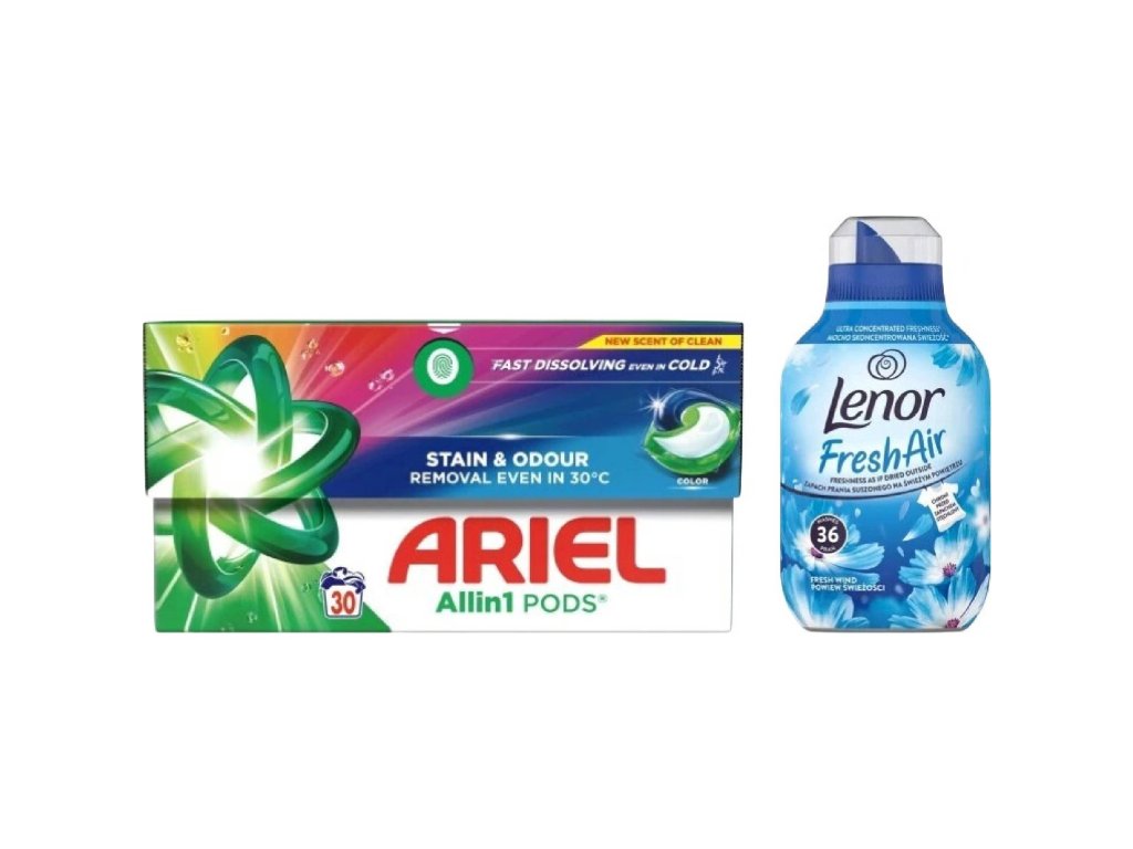 Ariel pracie kapsule Color 30 PD + Lenor aviváž 36 PD Fresh Wind
