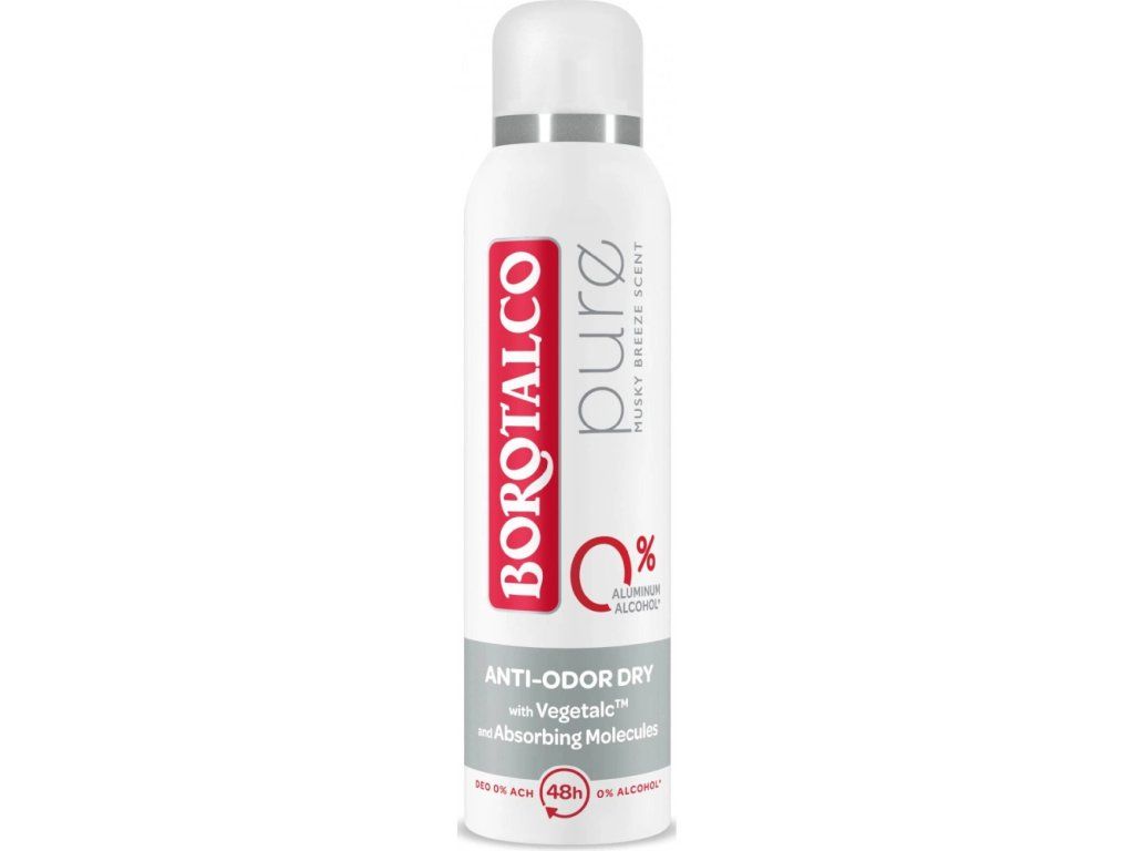 Borotalco Pure dezodorant v spreji 150 ml. Umožňuje pokožke dýchať. Zloženie s 0% hliníkových solí zaručuje 48h účinnosť proti zápachu a prirodzenú sviežosť pre jemnú, ale účinnú ochranu proti potu a škvrnám na oblečení, pričom rešpektuje pokožku.Dodatočné parametre