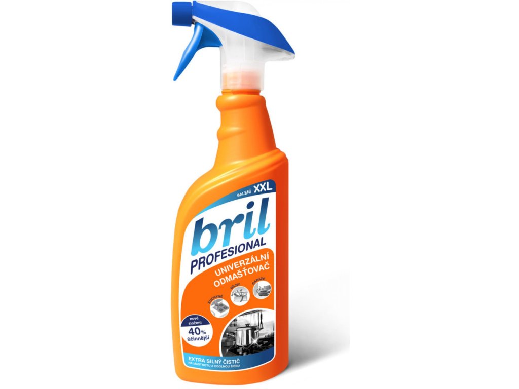 Nový univerzálny odmasťovač Bril Profesional vďaka vylepšenému zloženiu je teraz o 40 % účinnejší v odstránení odolnej mastnoty v domácnosti - sporáky, pracovné dosky, digestory, kuchynské obklady, skrinky, drezy a pod. Vyčistí tiež mastnú špinu v dielňach, garážach alebo na obuvi . S pomocou inovatívnej sily Bril bude teraz upratovanie akejkoľvek mastnoty veľmi jednoduché. Návod na použitie:-Kuchyňa: Nestriekajte na znečistenú plochu a nechajte pôsobiť niekoľko sekúnd. Zotrite vlhkou handrou.