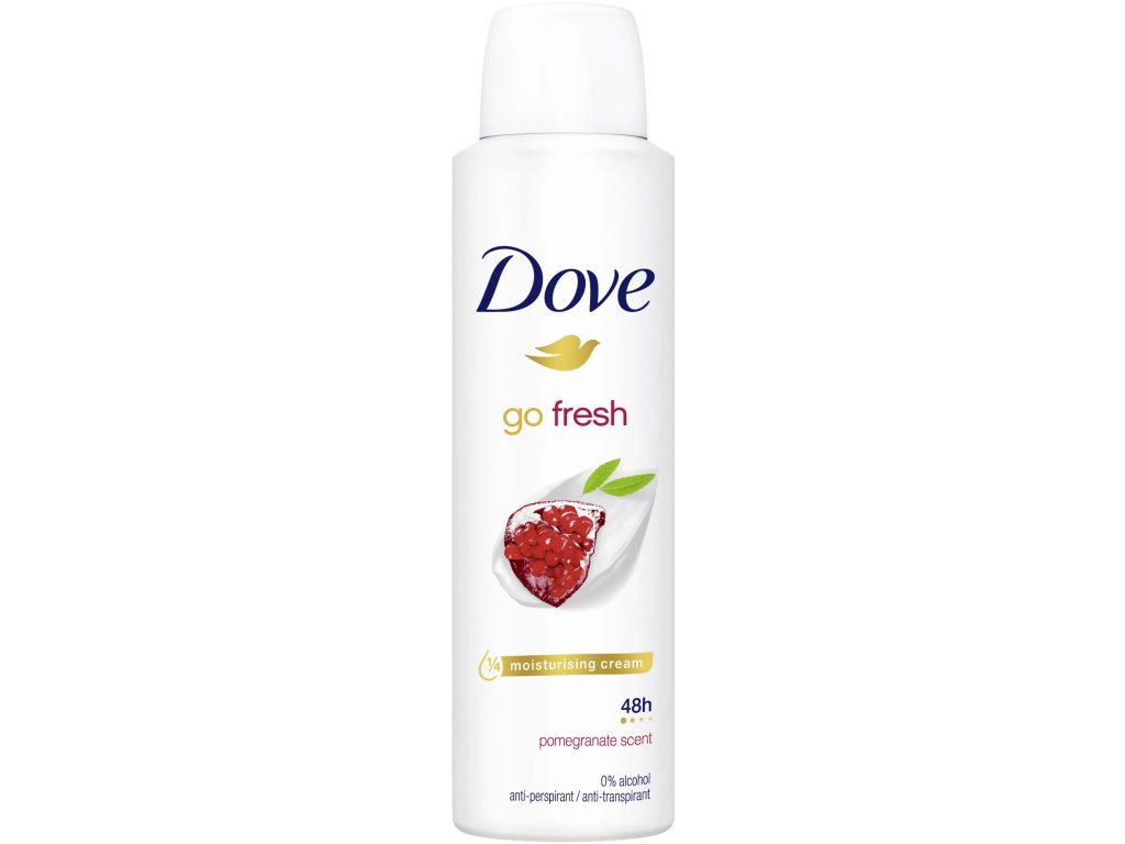 Pokiaľ hľadáte antiperspirant v spreji, ktorý kombinuje ochranu so starostlivosťou, už nehľadajte. Náš antiperspirant v spreji Dove Go Fresh Granátové jablko obsahuje totiž 1 hydratačný krém a 100% prírodný ošetrujúci olej, ktoré zanechajú pokožku v podpazuší jemnú a hladkú na dotyk. Tento antiperspirant v spreji ponúka navyše 48-hodinovú ochranu pred potom a zápachom. Vyskúšajte vôňu granátového jablka.Dodatočné parametre