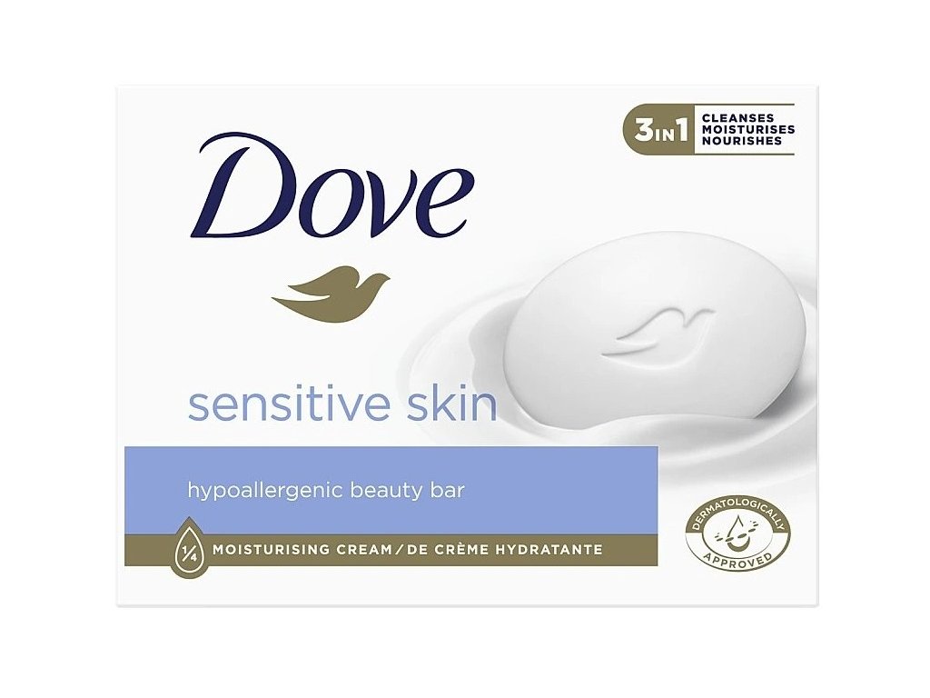 Dove Sensitive Hypoalergénna krémová tableta na umývanie. Obsahuje 1/4 hydratačného krému.Namiesto klasického mydla, ktoré môže pokožku dráždiť a vysušovať, prichádza Dove s unikátnym výrobkom, ktorý už teraz kožní lekári odporúčajú na starostlivosť o tvár a detskú pokožku. Jedná sa o krémovú tabletu Dove obsahujúcu neutrálne čistiace prísady a 1/4 hydratačného krému. Tableta je bez parfumov a Parabénov a tým je vhodná aj pre osoby s najcitlivejšou pokožkou. Špeciálne Hypoalergénne a Dermatologicky testované zloženie poskytuje pokožke pozornosť, ktorú si zaslúži.