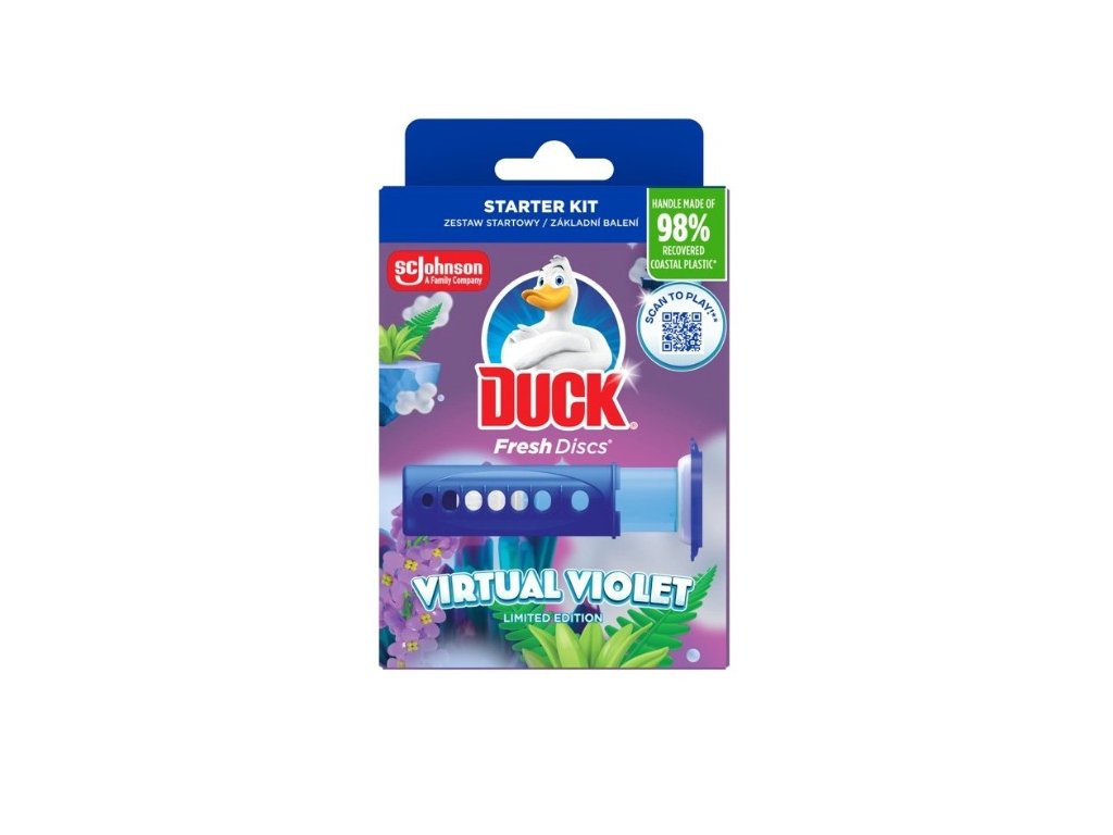Doprajte svojej toalete dokonalú sviežosť a čistotu! DUCK WC čistič Virtual Violet ponúka moderný spôsob udržiavania hygieny bez potreby závesných blokov. Vďaka jednoduchej aplikácii gélových diskov zaistí dlhotrvajúcu ochranu pred nečistotami a prevonia váš priestor vôňou fialiek. Premeňte každé spláchnutie na osviežujúci zážitok!Dodatočné parametre