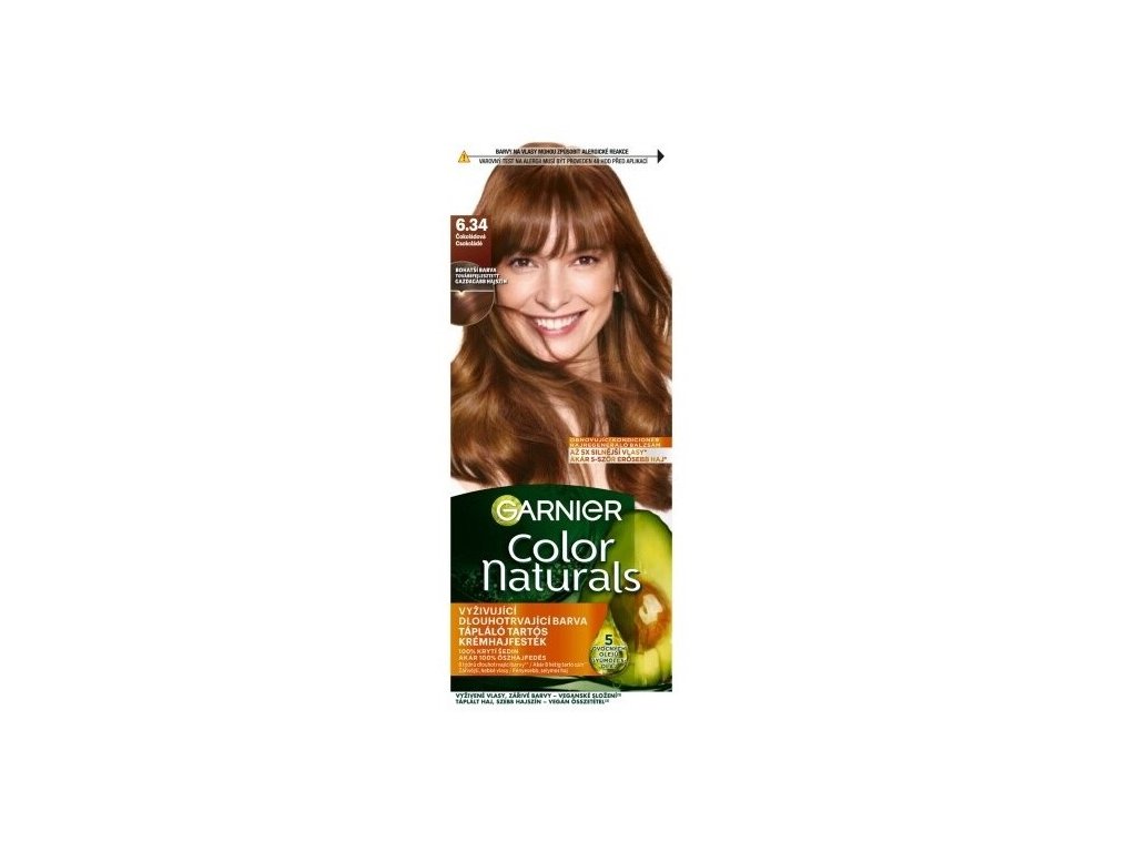 Farba na vlasy Garnier Color Naturals Creme je prvou vyživujúcou permanentnou farbou od Garnier so zložením s dvojakou ochranou. vlasy, uhladzuje povrch vlasového vlákna a vytvára ochrannú vrstvu. Ďalšia je ochrana pre sýtejšiu a dlhšie trvajúcu farbu – krémové zloženie preniká do vlasových vlákien a vypĺňa ich sýtou bohatou farbou. Vďaka záverečnej starostlivosti s 5 olejmi je farba bohatá a dlhotrvajúca. vlasov pred vysušovaním až na 8 týždňov, (*Inštrumentálny test). Zosvetľujúce farby dokážu prirodzene odfarbiť vlasy až o 4 odtiene.Dodatočné parametre