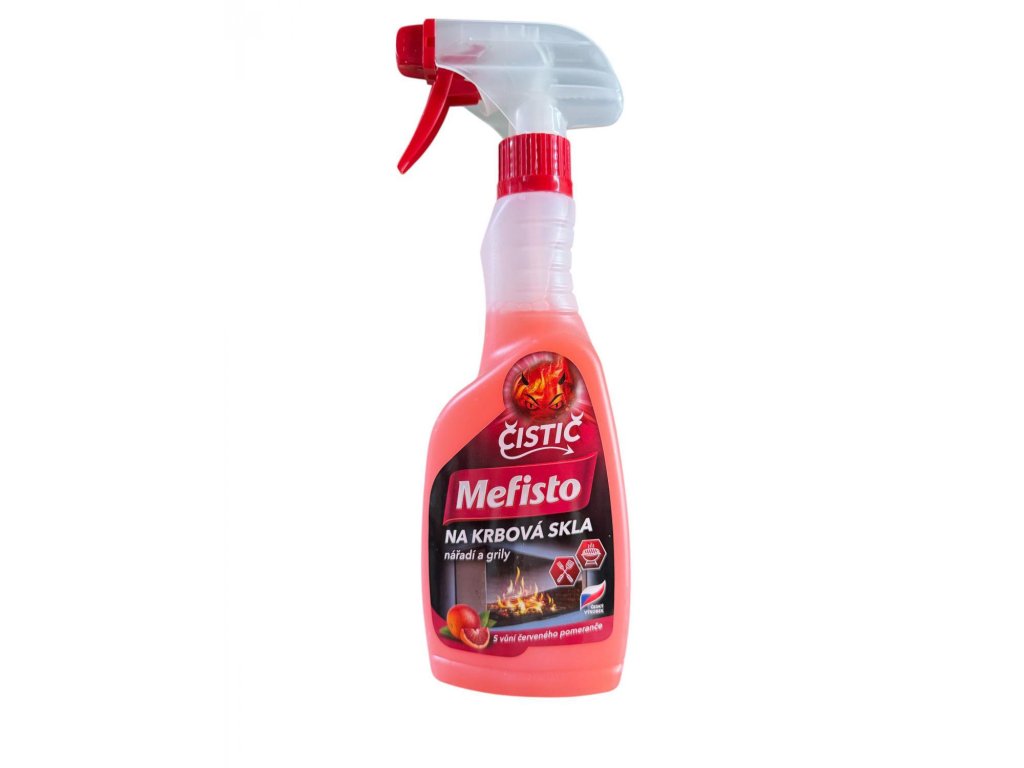 Mefisto Špeciál, čistič na krbové vložky a kachle. Prípravok s mechanickým rozprašovačom je určený na odstraňovanie sadzí a mastných nečistôt z povrchu skiel dvierok krbových kachlí a presklených vložiek krbov.Možno použiť aj na odstraňovanie sadzí a mastných pripečených nečistôt z krbového náradia alebo súčastí grilu, keramických obkladov, dlažby a pod. Prípravok vďaka gélovej konzistencii nesteká. Obsahuje príjemnú vôňu červeného pomaranča.