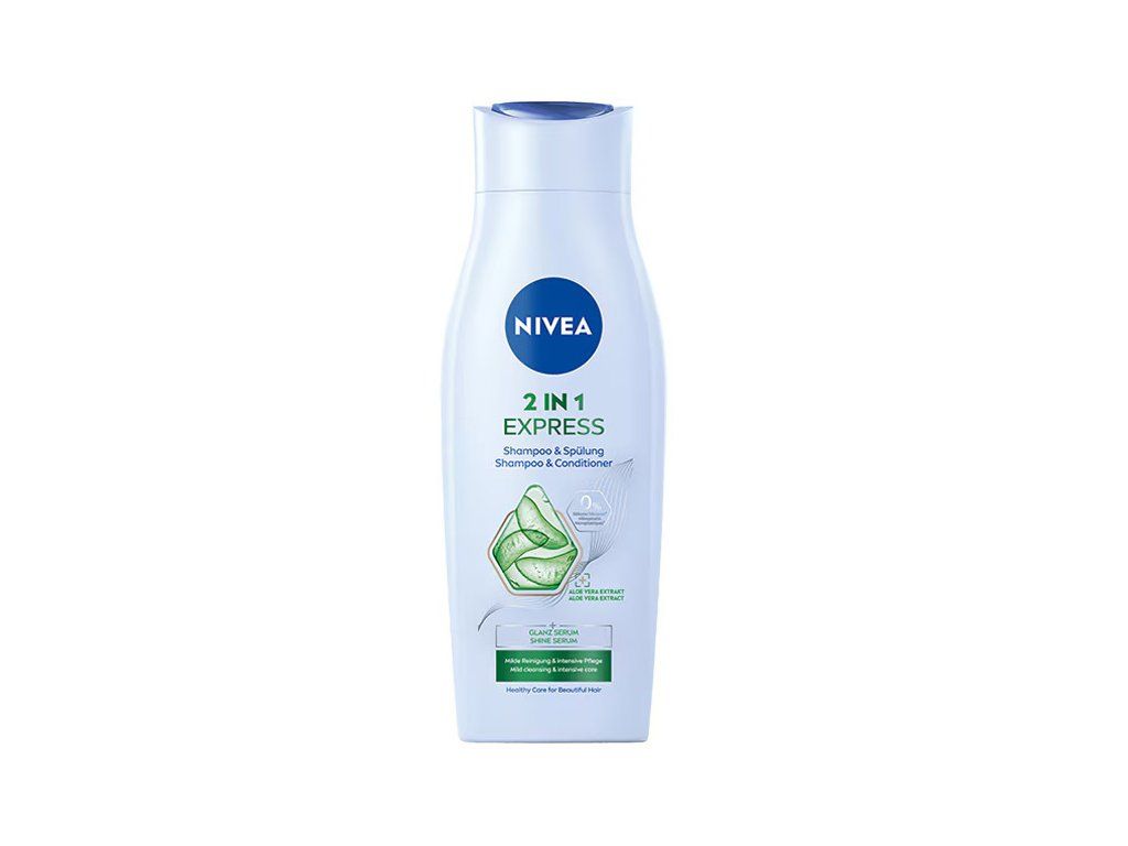 Nivea šampón 2v1 Express určený pre všetky typy vlasov spĺňa dva účely v jednom kroku. Vlasy dôkladne čistí a zároveň ich sceľuje. Obsahuje výťažky z agátu a tekutý keratín, ktorý vlasy uhladzuje. Šampón je tak veľmi komfortný a umývanie vlasov vám nezaberie dlhú dobu. Vaše vlasy budú krásne rozčesateľné a prevoňané.Túžite po krásnych, zdravých a lesklých vlasoch? Vyskúšajte Nivea šampón 2v1 Express, dosiahnete maximálnu starostlivosť v minimálnom čase!