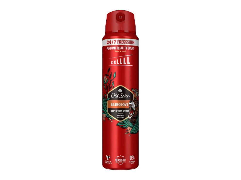 Účinný dezodorant v spreji OLD SPICE Bearglove prináša podmanivú vôňu jablka, citrusu a korenia pre skutočných mužov! Neviditeľná ochrana proti telesnému zápachu a potu vás nesklame až 48 hodín vďaka technológii postupného uvoľňovania. Zvýraznite vašu mužnosť a sebavedomie s dezodorantom OLD SPICE Bearglove v spreji.Vlastnosti: