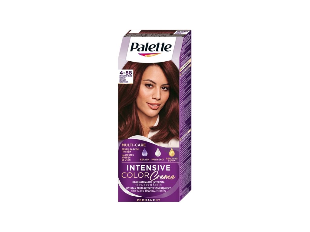 Farba ako stvorená pre mňa. Vysoká intenzita farby a silné vlasy. Dosiahnite intenzívnu a žiarivú farbu, ktorá je pre Vás ako stvorená. Dlhotrvajúca vysoká intenzita farby, žiarivosť a starostlivosť o Vaše vlasy.Vyskúšajte NOVÉ Palette Intensive Color Creme s Ultimate Keratínom. Vaša obľúbená farba Vám teraz dodá dlhotrvajúci, vysoko intenzívny farebný výsledok a žiarivý lesk. Objavte Palette Intensive Color Creme s Ultimate Keratínom pre: dlhotrvajúcu intenzitu, maximálny lesk farby, zdravé a silné vlasy so starostlivosťou, až 100% krytie šedín a ochrana proti vymývaniu farby.