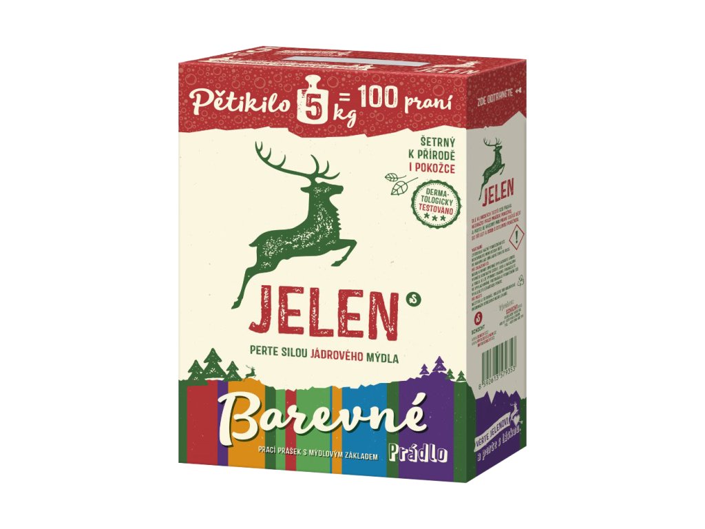 - Jeleň vydrží 60 praní na 10 litrov vody mu stačí 50 g prášku.