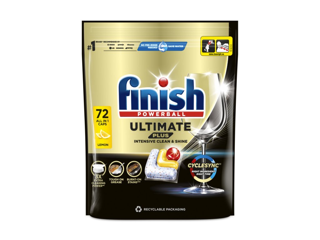 Finish Ultimate sú gélové tablety do umývačky riadu, ktoré sú odporúčané poprednými výrobcami umývačiek. Účinne odstraňujú nečistoty, škvrny (káva a čaj), usadeniny a zároveň sa starajú o lesk príborov a strieborných kusov riadu.Kapsule tiež poskytujú účinnú ochranu umývačky riadu, filtra a zabraňujú tvorbe vodného kameňa. Tiež odstraňujú zvyšky spáleného jedla a dodávajú riadu oslňujúci lesk bez šmúh. Finish Quantum Ultimate taktiež pracujú pri nízkych teplotách. Vlastnosti Finish Ultimate Plus All in 1 tablety do umývačky: